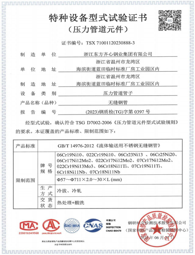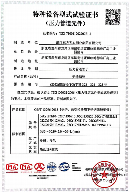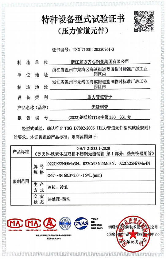 浙江東方齊心以不銹鋼系列產(chǎn)品為主導(dǎo),品種有不銹鋼管、奧氏體不銹鋼管、高溫合金鋼管、雙相不銹鋼管、鎳基合金管、冷凝器用管、U形管、核電管、不銹鋼管件、法蘭、閥門等。規(guī)格有6-2020x0.8-60mm,Ф16-25長度可達(dá)33m。公司擁有精密制造鋼管的各類機(jī)械設(shè)備25臺(tái)(套),其中各類冷軋管機(jī)15臺(tái), 冷拔機(jī)10臺(tái),天然氣熱處理爐2套。